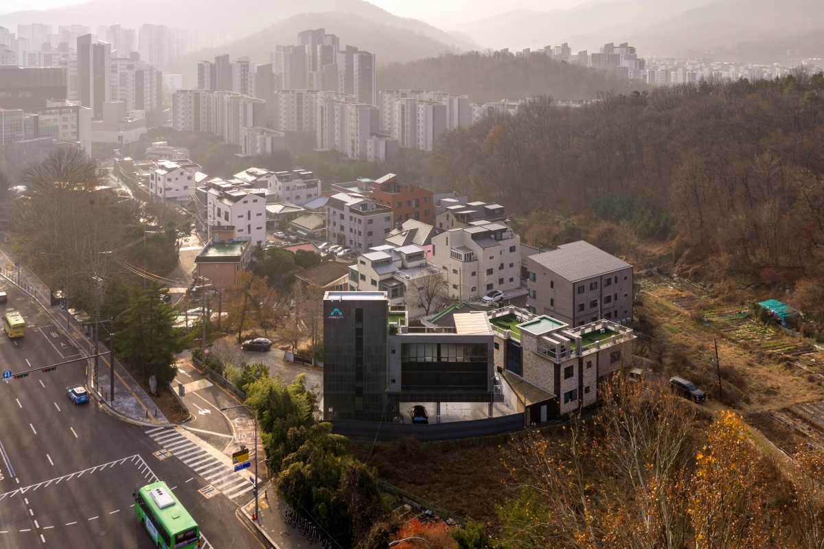 [건축개요]- 대지위치 : 서울시 서초구 염곡동- 지역지구 : 자연녹지지역, 집단취락지구- 대지면적 : 286㎡(86평)- 연 면 적 : 299.07㎡(90평)- 용 도 : 근린생활시설- 규 모 : 지하1층, 지상3층- 업무범위 : 계획설계 및 실시설계, 인허가[설계주안점]본 사업부지는 서울 서초구 염곡동의 헌릉로 대로변 나지막한 산 줄기 끝자락에 위치해 있습니다. 다가구 및 상가주택 등 주변 건축물과 함께 어우러지되 큰 대로변에서 먼저 만나게 되는 건물이기에 외부여서 보여지는 인상과 길이 만나는 가로 풍경에 대한 고민이 외부 디자인의 시작이었습니다. 최대 건축면적과 건폐율, 용적률을 쓰는 덩어리지만 입면의 비례가 적용된 창호와 개구부, 그리고 어두운색의 화강석 마감의 비움을 통해 입체적인 음영을 보여주려 했으며 창호를 커튼월로 디자인을 적용하여 입면의 요소를 추가하였습니다.
