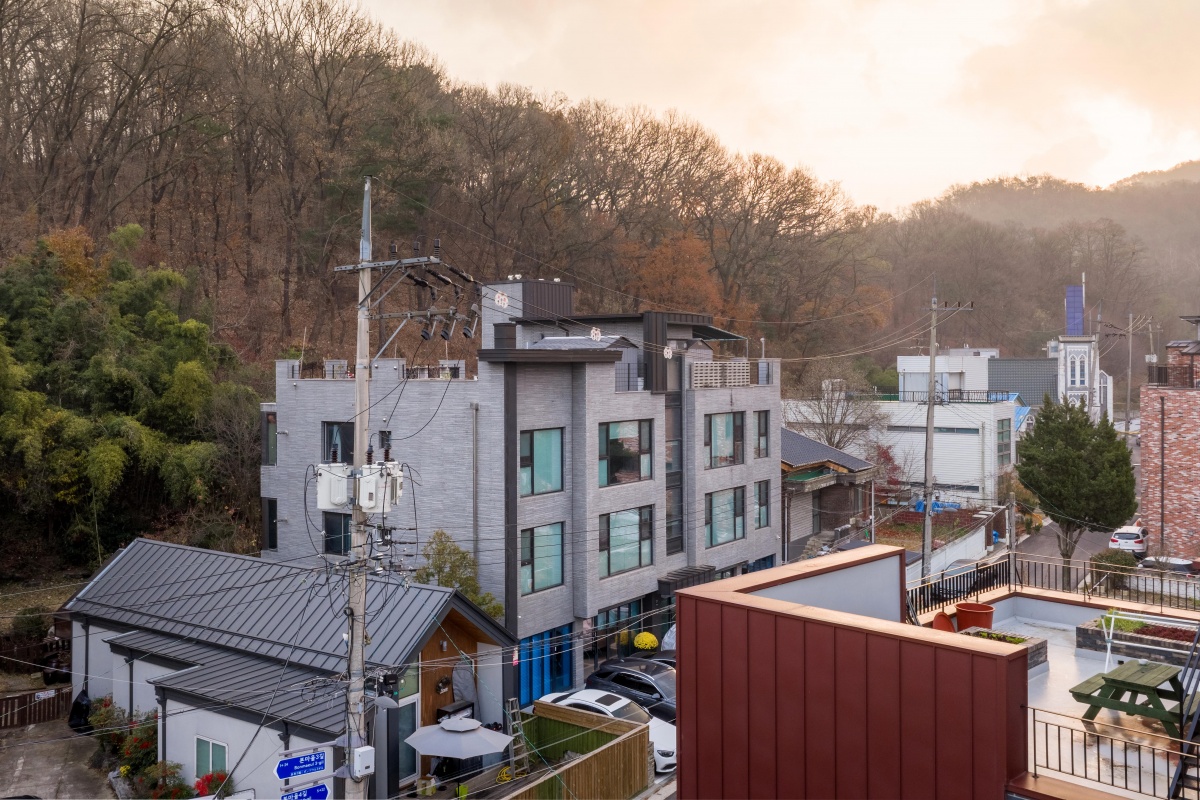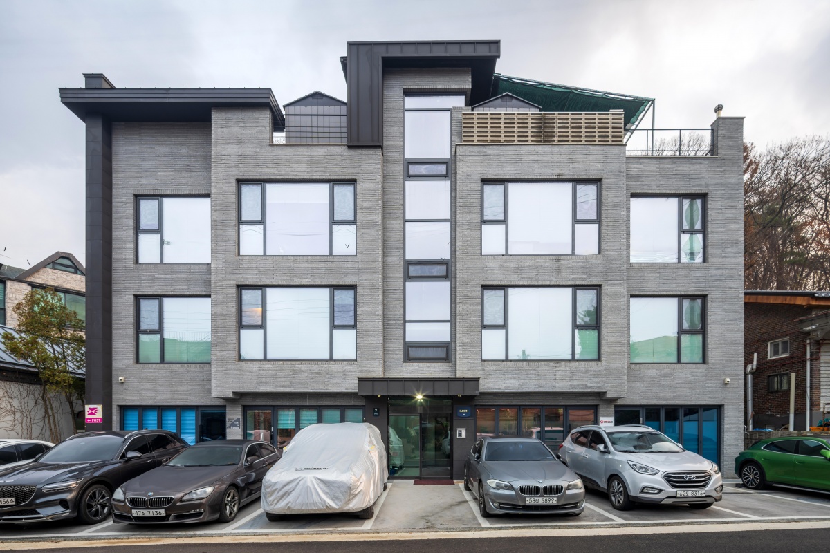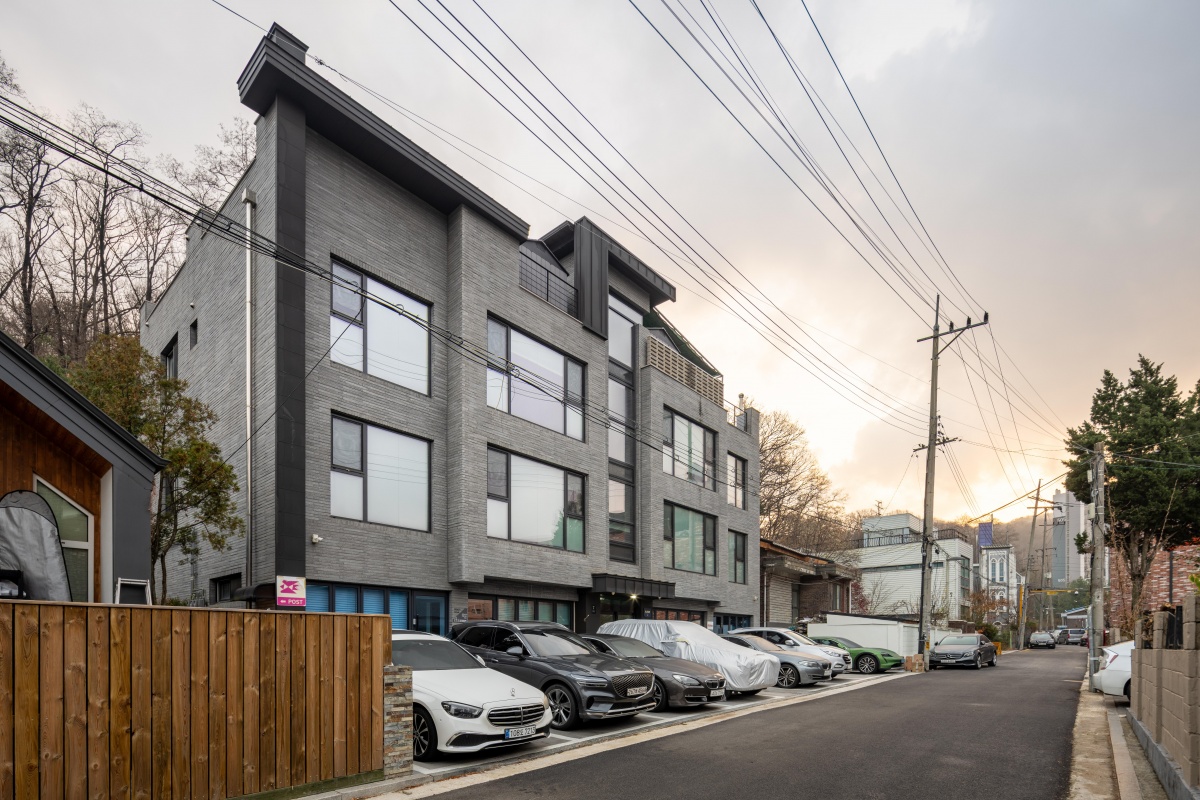 외벽마감을 롱블릭타일로 마감하여 고급스러운 느낌과 심플하고 미니멀한 외관을 만들어낸 건축물입니다.