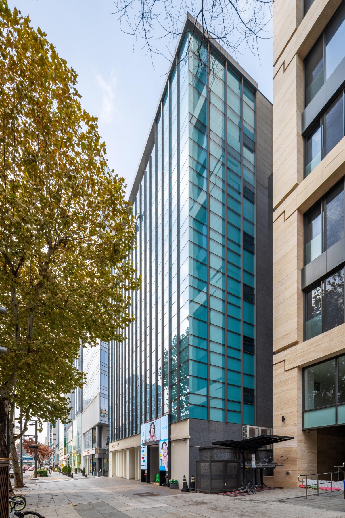 리모델링 전 지상7층 및 옥탑부분이 건축면적의 1/6 정도의 작은 면적이 있는 상태에서 7층 전체 외벽을 철골구조물을 세워 옥탑까지 커튼월로 높이 올려 디자인하고 그 위에 알루미늄 쉬트로 구조물을 추가하여 적용한 결과 높은 건물로 새롭게 변하고 시원스러워져 건축주께서 만족하셨습니다.