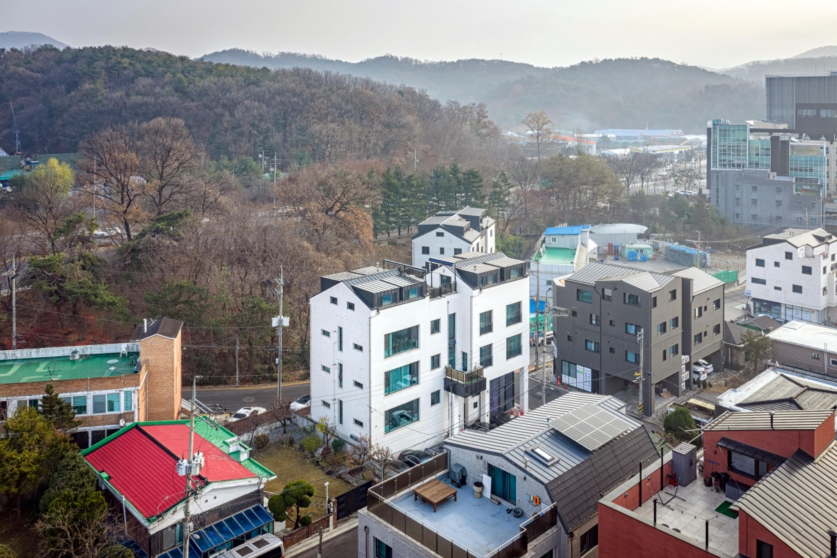본 건축물은 개발제한구역에 위치해 있으며 이곳을 3층 건물로 설계하고 옥상에는 2개의 구분된 다락을 설계하여 그 가운데에 테라스 공간을 만들어 휴게공간으로 설계하였습니다.